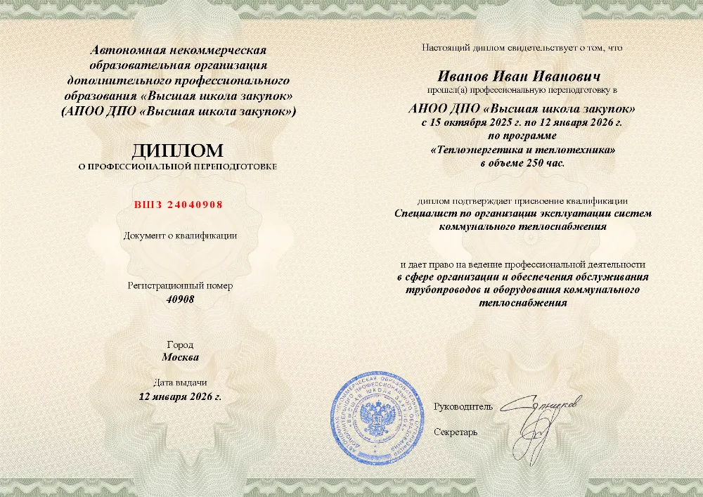 Программа профессиональной переподготовки (250 часов) для специалистов по теплоэнергетике в в Смоленске. Освойте теоретические основы, техническую эксплуатацию и безопасность тепловых энергоустановок, правила охраны труда, пожарной безопасности и аналитику надежности объектов.
