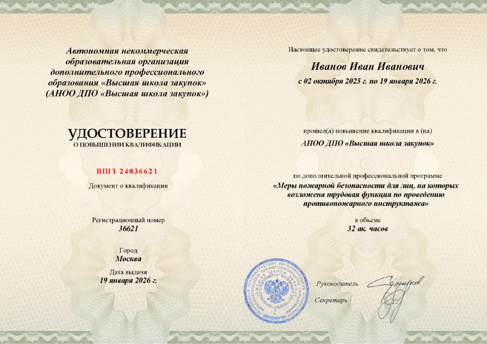 Повышение квалификации, 32 академических часа, 3 модуля: нормативно-правовые основы и обязанности инструктора, содержание и методика проведения противопожарных инструктажей, практические знания и навыки для эффективного обучения персонала. Онлайн-обучение в в Смоленске с итоговой аттестацией.