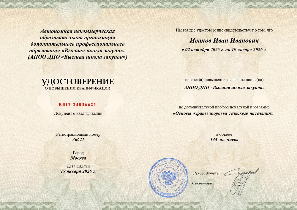 Курс повышения квалификации (144 часа) по основам охраны здоровья в сельской местности. Изучите правовые, организационные и экономические аспекты сельского здравоохранения, санитарно-эпидемиологическое обеспечение и управление качеством медицинской помощи. Онлайн-обучение в в Смоленске с итоговой аттестацией.