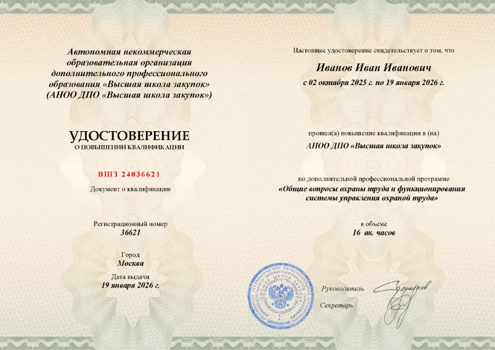 Повышение квалификации, 16 академических часов, 4 модуля: правовые основы и организация системы охраны труда, управление профессиональными рисками и оценка условий труда, обеспечение безопасных условий и социальные гарантии работникам, расследование несчастных случаев и внутренний аудит системы. Онлайн-обучение в в Смоленске с итоговой аттестацией.