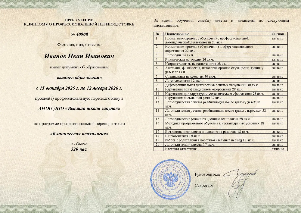 Профессиональная переподготовка, 520 академических часов, 20 модулей: нормативно-правовое обеспечение, основы невропатологии и специальной психологии, дифференциальная диагностика речевых нарушений, логопедические реабилитационные технологии, возрастная психология и психология развития, работа с семьями. Онлайн-обучение в в Смоленске с итоговой аттестацией.