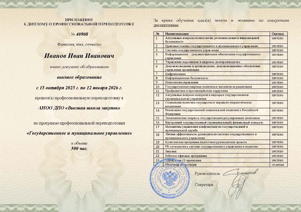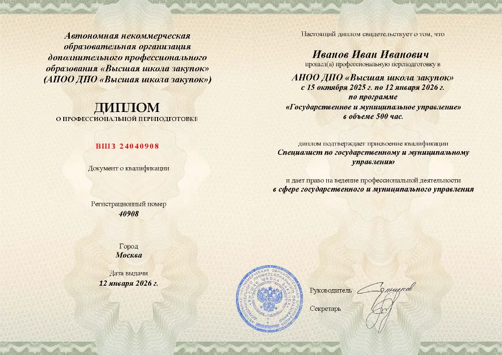 Профессиональная переподготовка, 500 академических часов, 25 модулей: правовые основы и система государственного управления, управление персоналом, финансами и противодействие коррупции, социальная политика и экономическое регулирование, цифровизация, закупки и информационная безопасность. Онлайн-обучение в в Смоленске с итоговой аттестацией.